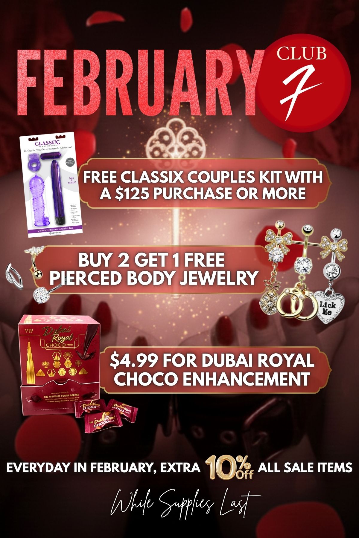 Monthly specials on select items in store for Club F members only.